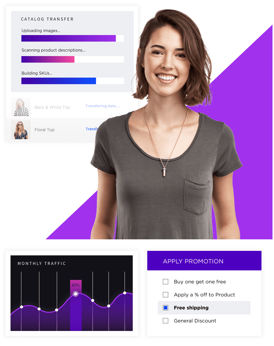 Cut the cost of licensing, implementation, and specialized developers, and scale without incurring extra fees. BigCommerce offers predictable flat-rate pricing so you can plan without budgetary surprises.